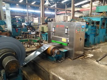 2007年公司通過引進(jìn)國外先進(jìn)的靜電涂裝技術(shù),結(jié)合國內(nèi)各類中小型金屬板(帶、絲)冷軋機(jī)組的實際應(yīng)用情況,成功的研發(fā)出XCTZ-3型系列金屬板(帶)冷軋靜電涂油機(jī)、XCTZ-H101焊絲靜電涂油機(jī)、XCTZ-D刀帶靜電涂油機(jī),其高壓力微流量雙流體霧化靜電涂油技術(shù)已在國內(nèi)處于領(lǐng)先地位.每平米0.3克(單面)的涂油量已在實際應(yīng)用中得到滿意的效果.